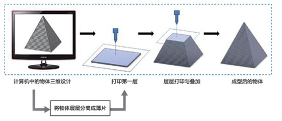 外觀設計是指形狀、圖案、色彩或其結合的設計,這里的外觀設計主要是指外觀形狀的三維結構,其次便是色彩。包括工業(yè)設計品(如商品外觀、包裝設計等)和藝術設計(工業(yè)藝術品、藝術造型燈)。3D打印的特點便是小批量、定制化制造復雜模型。其基本原理如圖: