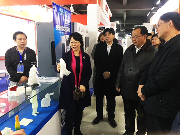 全國(guó)3D大賽嘉賓一行參觀數(shù)造科技展臺(tái)。