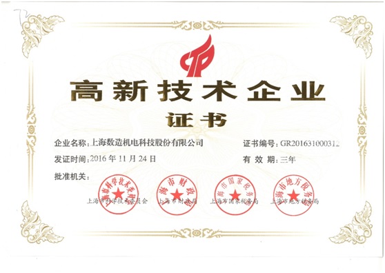 2017年2月7日,上海數(shù)造機(jī)電科技股份有限公司收到了由上海市科學(xué)技術(shù)委員會(huì)、上海市財(cái)政局、上海市國家稅務(wù)局、上海市地方稅務(wù)局聯(lián)合頒發(fā)的“高新技術(shù)企業(yè)”認(rèn)定......