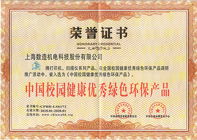 2018年1月,上海數(shù)造機(jī)電科技股份有限公司研發(fā)生產(chǎn)的3D打印機(jī)和三維掃描儀在全國校園健康優(yōu)秀綠色環(huán)保產(chǎn)品調(diào)研推廣活動(dòng)中,被入選為《中國校園健康優(yōu)秀綠色環(huán)保產(chǎn)品》。