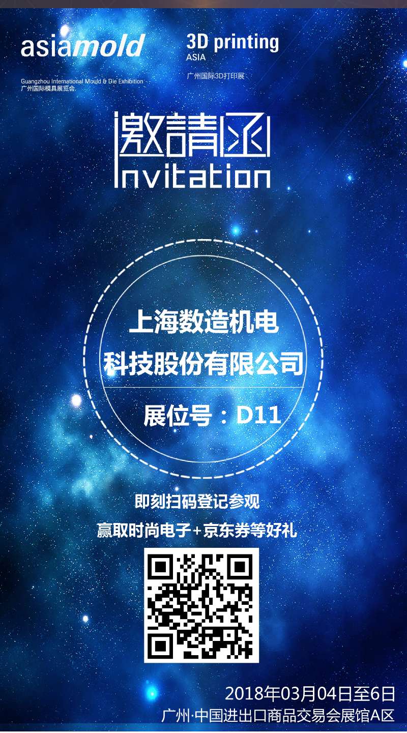 上海數(shù)造將亮相第十二屆廣州國際模具展覽會(huì)(Asiamold),上海數(shù)造的發(fā)展道路離不開您的支持與肯定。2018年3月4日-6日,廣州.中國進(jìn)出口商品交易會(huì)展館......