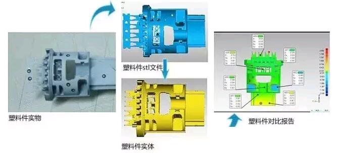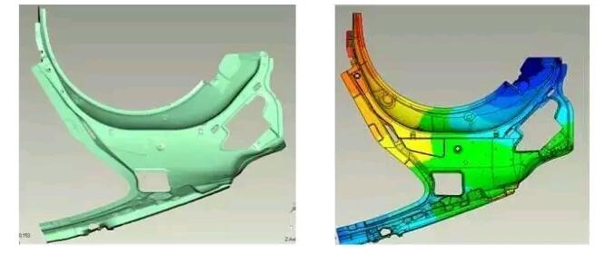 三維掃描系統(tǒng)能夠?qū)ζ囘M行裝配檢測,尤其是使用傳統(tǒng)手段難以檢測的自由曲面更加有效。在對整車或者部件進行掃描后,導入專業(yè)質(zhì)量檢測軟件進行尺寸檢測,生成的色差分析圖和誤差分析報告能夠更直觀了解誤差。這種自由曲面的三維檢測方式節(jié)省了人力和時間,讓制造商快速生產(chǎn)出精度高,質(zhì)量可靠的汽車配件,滿足了客戶的需求。